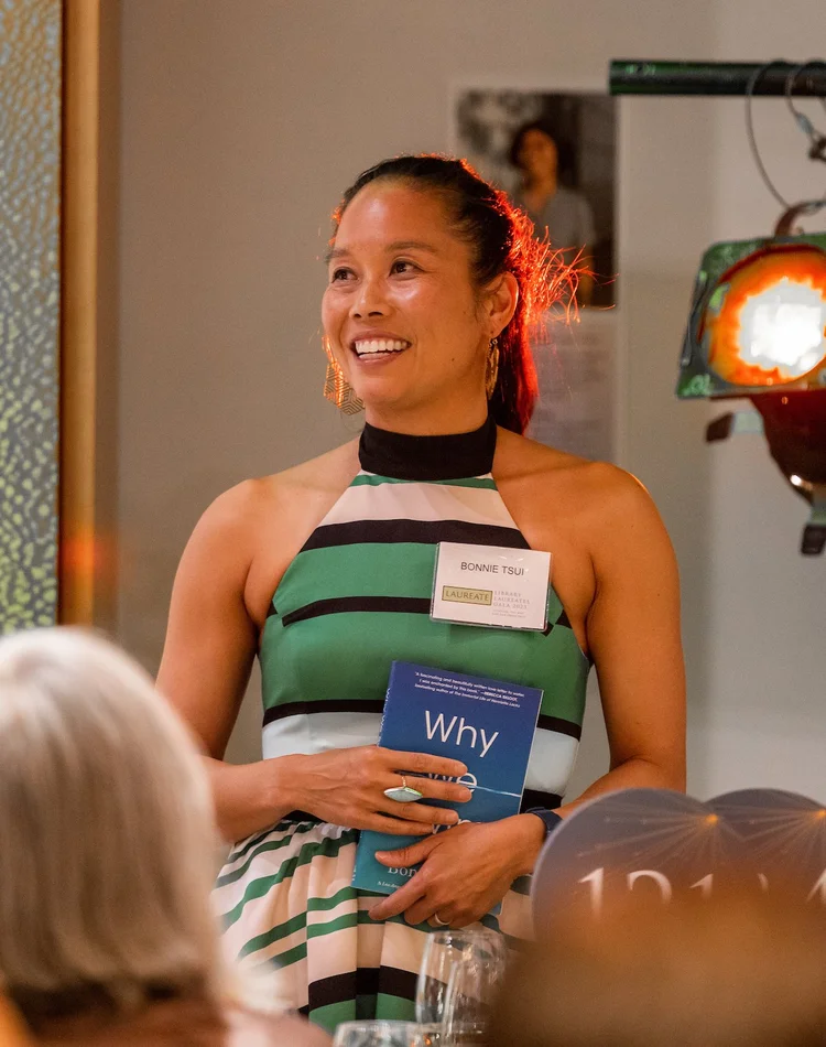 Bonnie Tsui was born in Queens, New York, and raised on Long Island. As her parents met in a swimming pool in Hong Kong, it seemed fitting that she and her brother should then prepare for competitive swimming careers, which lasted a decade. She attended Harvard University, where she rowed crew, snowboarded, and graduated magna cum laude in English and American Literature and Language. She also lived in Australia, studying at the University of Sydney and writing for The Sydney Morning Herald, and won a Radcliffe Traveling Fellowship to New Zealand.