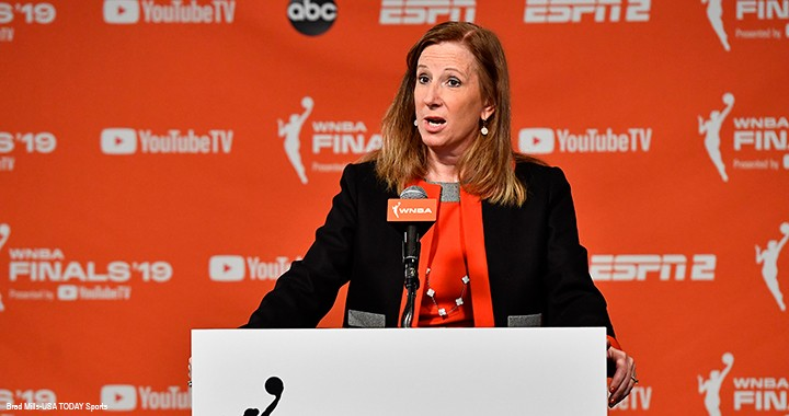 WNBA Commissioner Cathy Engelbert speaks at The National Press Club