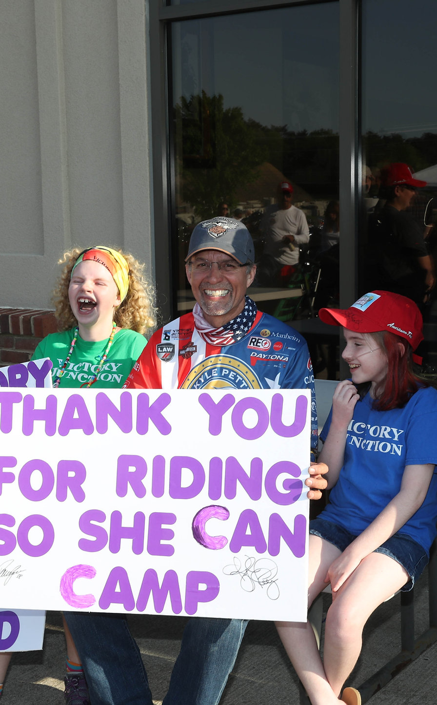 For 27 years, Kyle Petty has hosted hundreds of NASCAR fans, drivers and motorcycle enthusiasts on his annual Kyle Petty Charity Ride Across America. The Ride travels cross-country each spring to raise funds and awareness for Victory Junction. To date, the Ride has raised more than $19 million for children with chronic and serious illnesses, and is the most successful philanthropic event staged by any person in the NASCAR family.