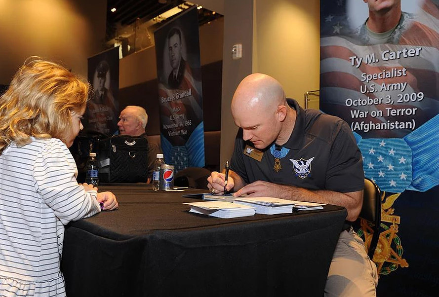 Carter was awarded the Medal of Honor by President Obama on August 26th, 2013 and later left active duty in October 2014. Since then he has worked tirelessly to destigmatize posttraumatic stress (PTS), a condition from which he has suffered. Currently, he travels the country as a motivational and educational speaker while being a full-time student working towards his Associates Degree in Firearms Science and Technology. He currently resides in Texas with his family and spends his free time doing various hobbies like home brewing and reloading.